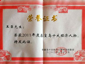 - 6、2011年董事長王臣被評為2011年度秦皇島十大經(jīng)濟人物